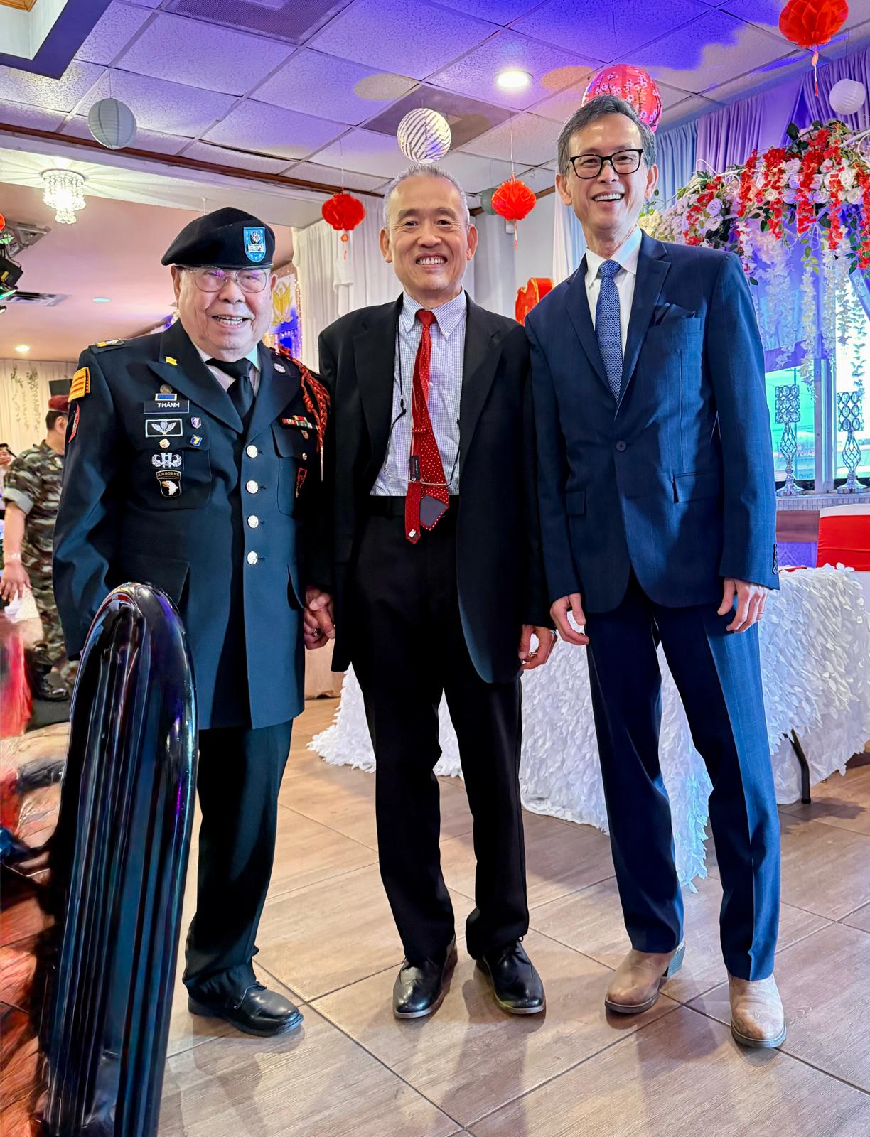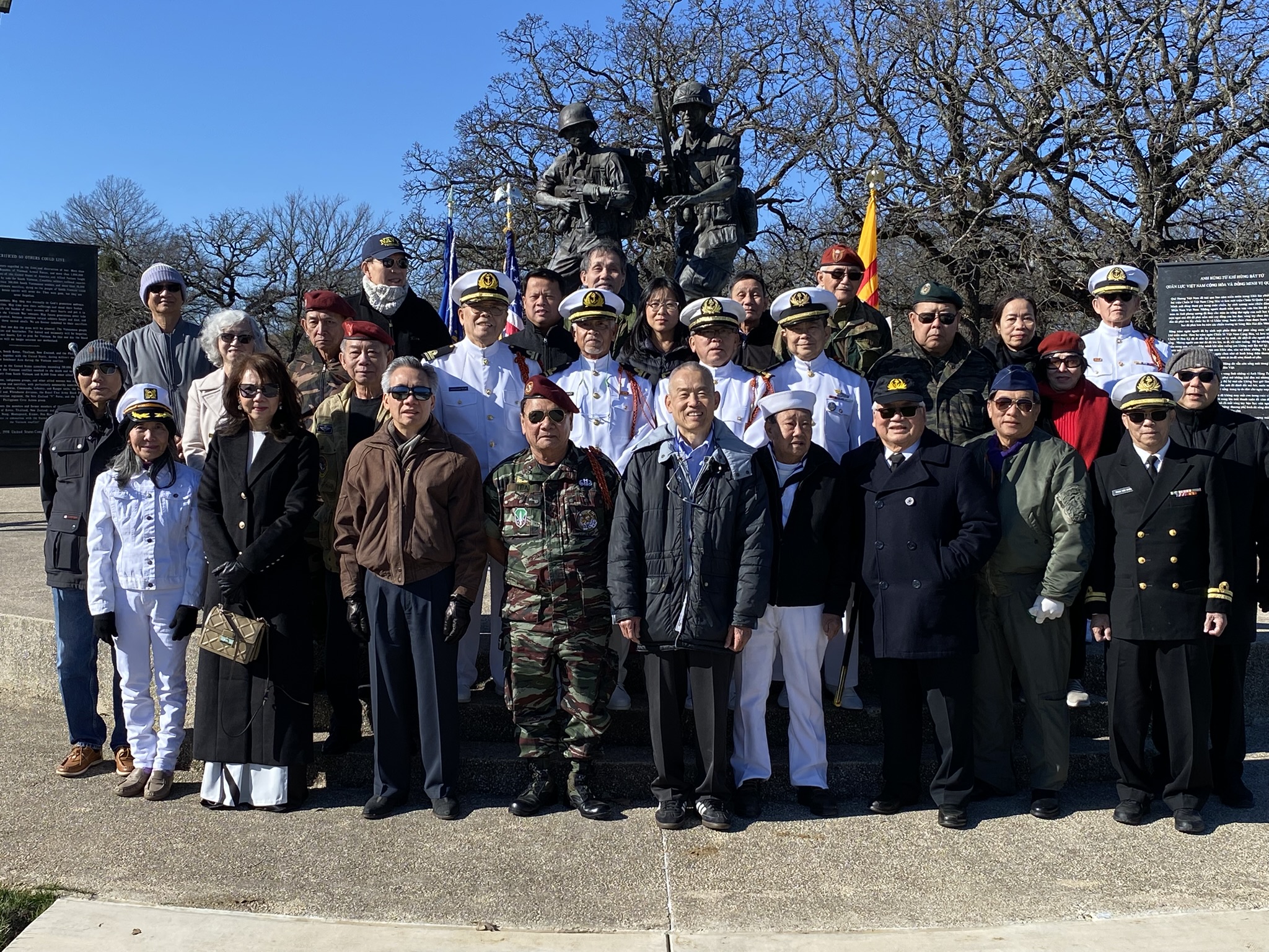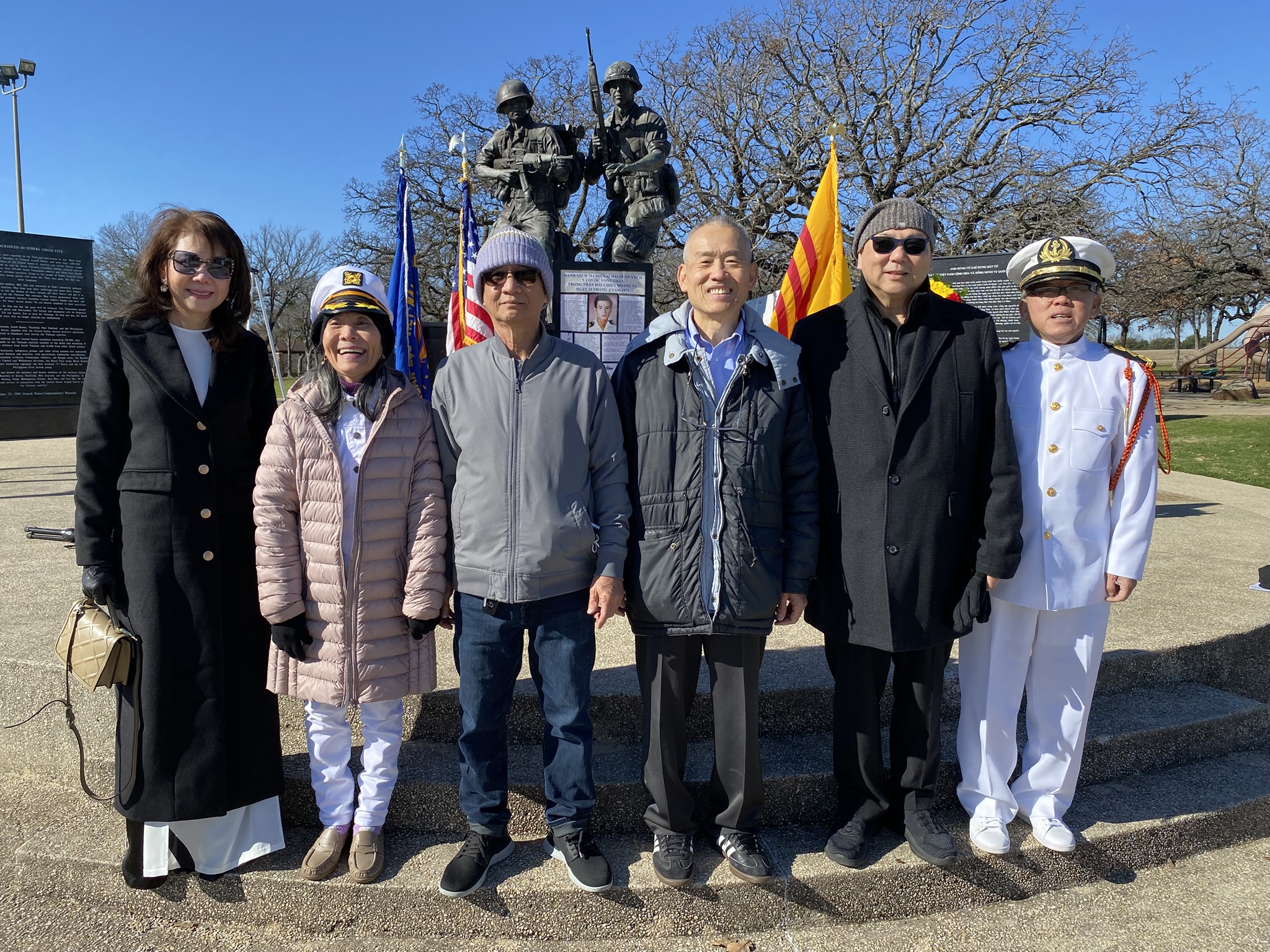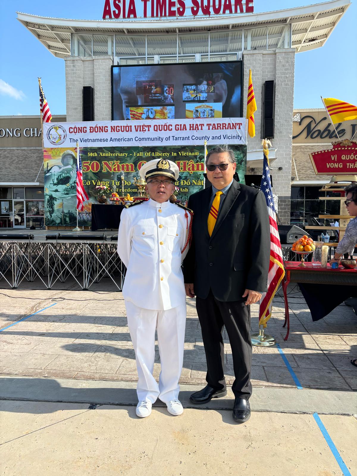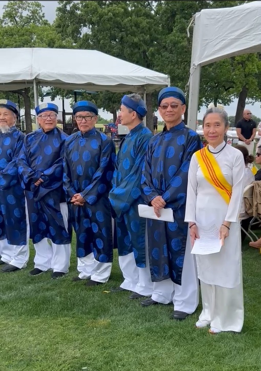 Đứng thứ (5) (từ trái qua phải): Lê Anh Vũ (hậu duệ Thủ Đức), Đặng Phi Oanh (hậu duệ Võ Bị Đà Lạt), Hội Hải Quân Trùng Dương Dallas-Fort Worth, Texas & Vùng Phụ Cận