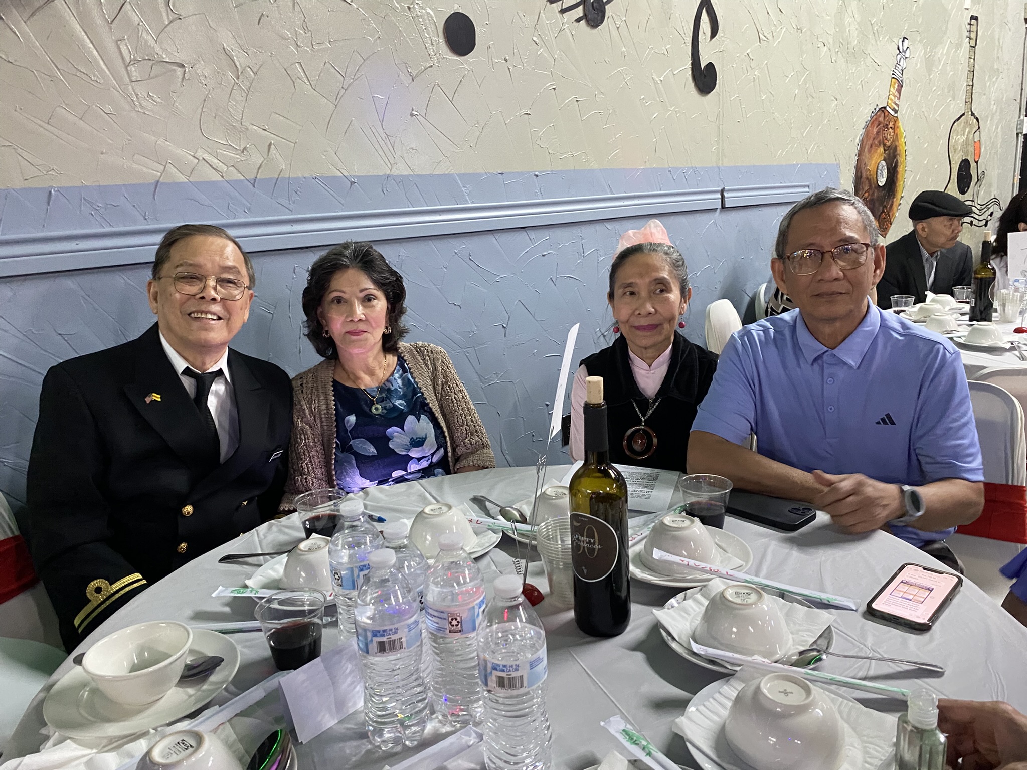 Người anh cả quân chủng Hải Quân, Đô Đốc Trần Văn Chơn, thủ khoa khoá 1, cựu Tư Lệnh Hải Quân Việt Nam (HQVN) dù đã 94 tuổi vẫn tươi cười, thư thái chống gậy đến tham dư và được các cựu SQHQ và gia đình ân cần đến thăm hỏi với tấm lòng quý mến sâu sắc.