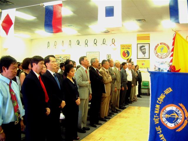Quan khách đứng chào quốc kỳ Mỹ