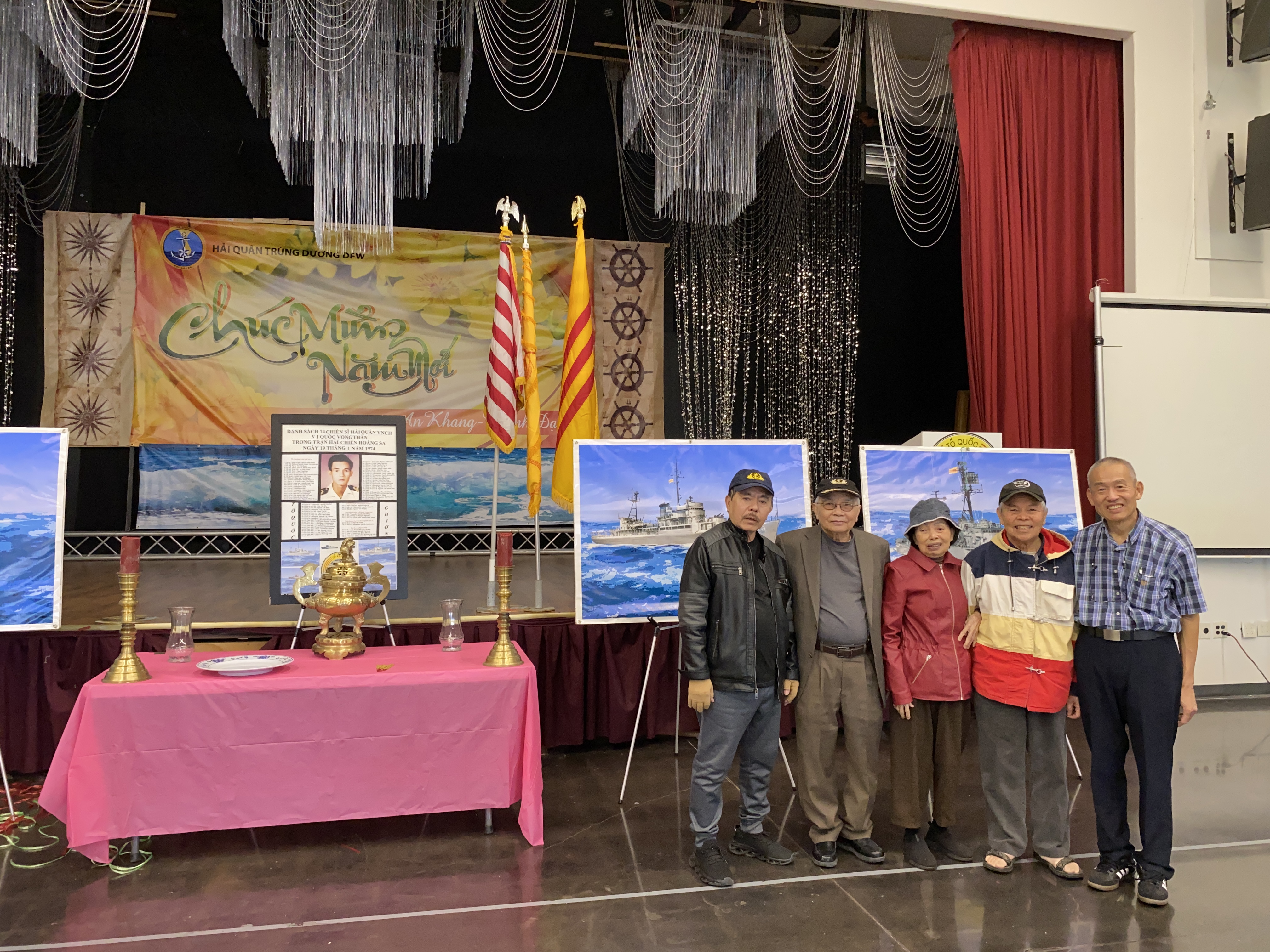 Từ trái qua phải: Bà phu nhân Hải Quân Đại Tá Hà Văn Ngạc (1935-1999, Khóa 5), Hà Mạnh Chí {hậu duệ của Hải Quân Đại Tá Hà Văn Ngạc (1935-1999, Khóa 5)}, ca sĩ Kim Tước {phu nhân HQ Đại Tá Nguyễn Trọng Hiệp (1934-2022, Khóa 5)}, và Nguyễn Trác Phương (thân hữu)