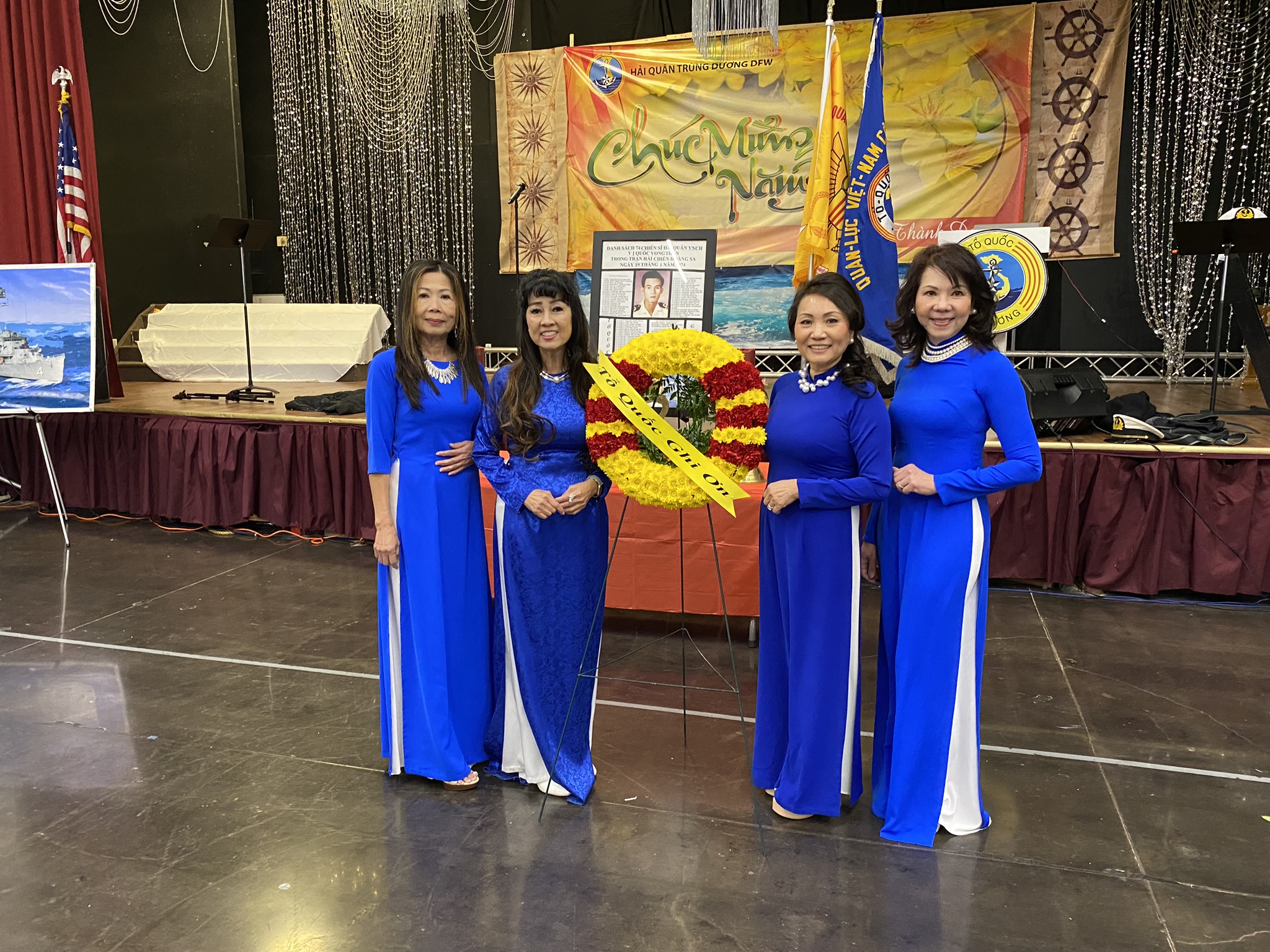 Từ trái qua phải: Nguyễn Trác Phương (gia đình Hải Quân Trùng Dương Dallas-Fort Worth), Ca Sĩ Hoàng Lan (Nhóm Thiện Nguyện Hoàng Lan), Trưởng Ban Văn Nghệ Nguyễn Thanh Hằng (gia đình Hải Quân Trùng Dương Dallas-Fort Worth), và Nguyễn Thục Huyền {Hậu duệ của cố HQ Trung Tá Nguyễn Trần Hùng (Khóa 6)}