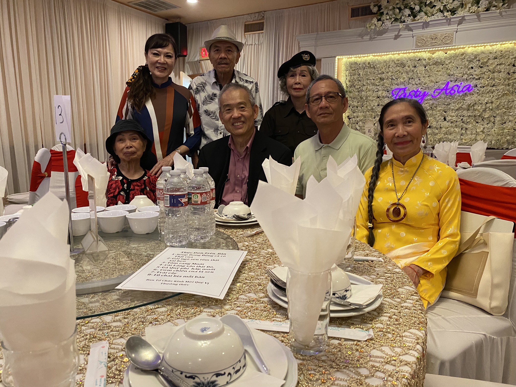 Từ trái qua phải: Bà phu nhân Hải Quân Đại Tá Nguyễn Trọng Hiệp (1933-2022, Khóa 5), Bà phu nhân Hải Quân Đại Tá Hà Văn Ngạc (1935-1999, Khóa 5), thân hữu Thu Hoàng, Tiến Sĩ Hà Mạnh Chí, Ph.D., hậu duệ Hải Quân Đại Tá Hà Văn Ngạc (1935-1999, Khóa 5) & Hội Trưởng, Hội Hải Quân Trùng Dương Dallas-Fort Worth & Vùng Phụ Cận, Lê Anh Vũ & Phi Oanh {hậu duệ Võ Bị Đà Lạt}