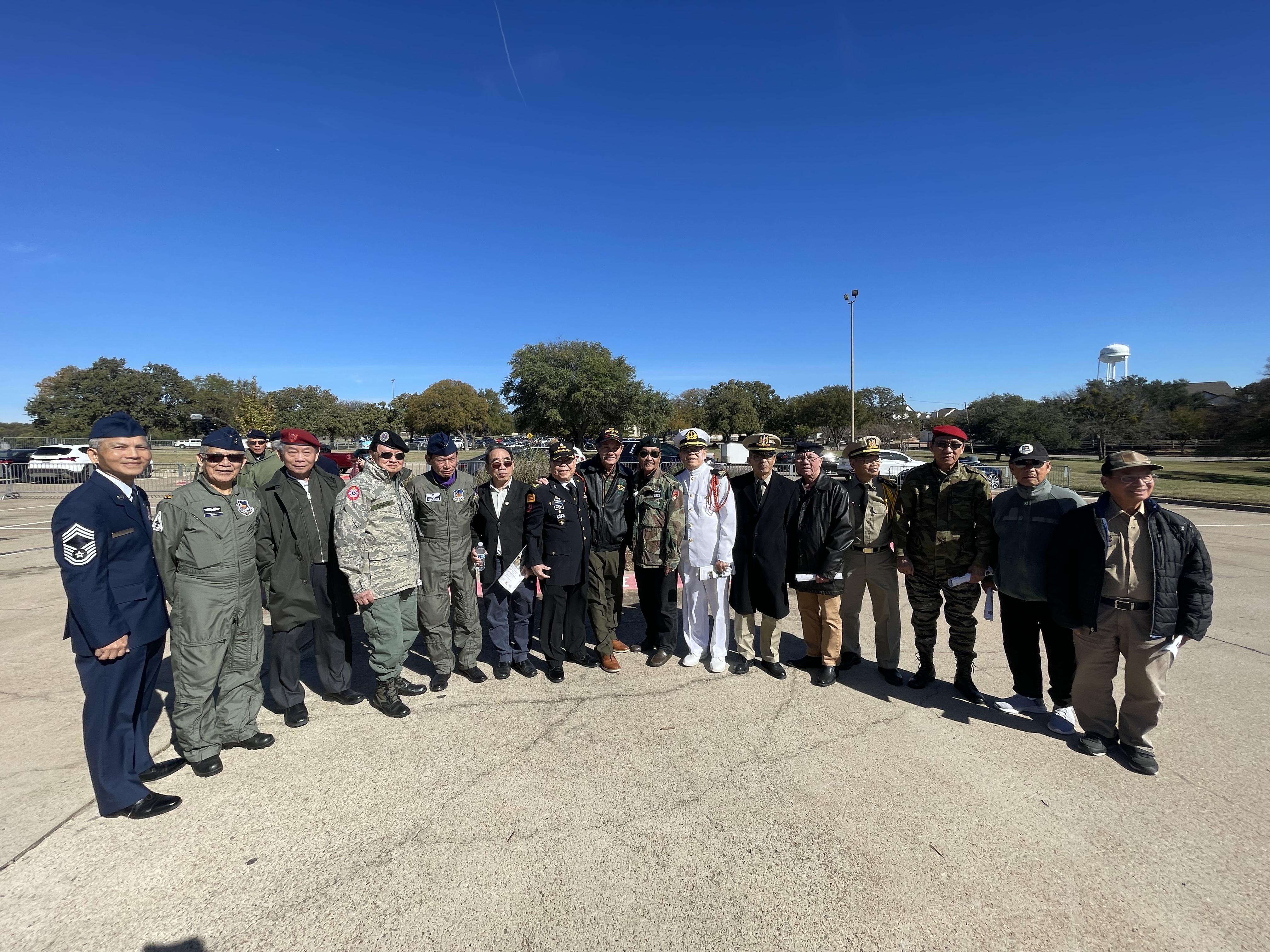 Chief Master Sergeant Huy Vũ, United States Air Force (Ret.) {left} chụp hình lưu niệm với tập đoàn cựu quân nhân Quân Lực Việt Nam Cộng Hòa tại Dallas-Fort Worth, Texas, USA, trong ngày