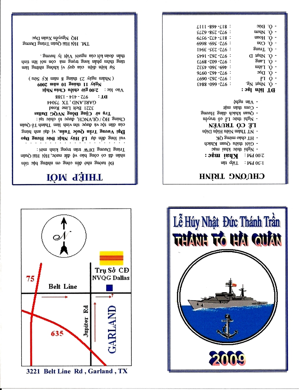 Thư mời tham dự ngày Thánh Tổ Hải Quân VNCH
