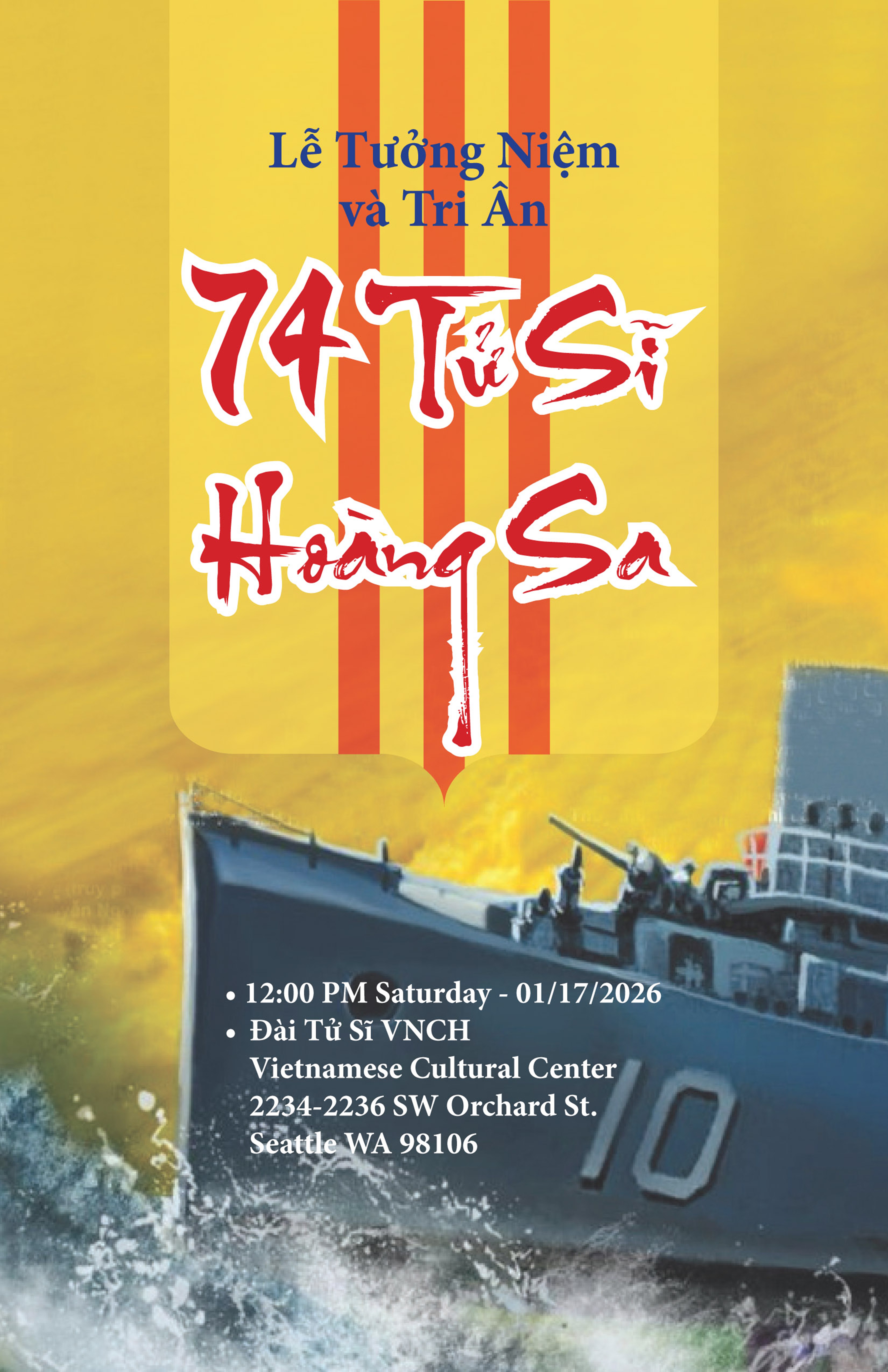 Tưởng Niệm 52 năm Trận Hải Chiến Hoàng Sa (1974-2026) tại Seattle, Washington, USA ngày Thứ Bảy, 17 tháng 01 năm 2026